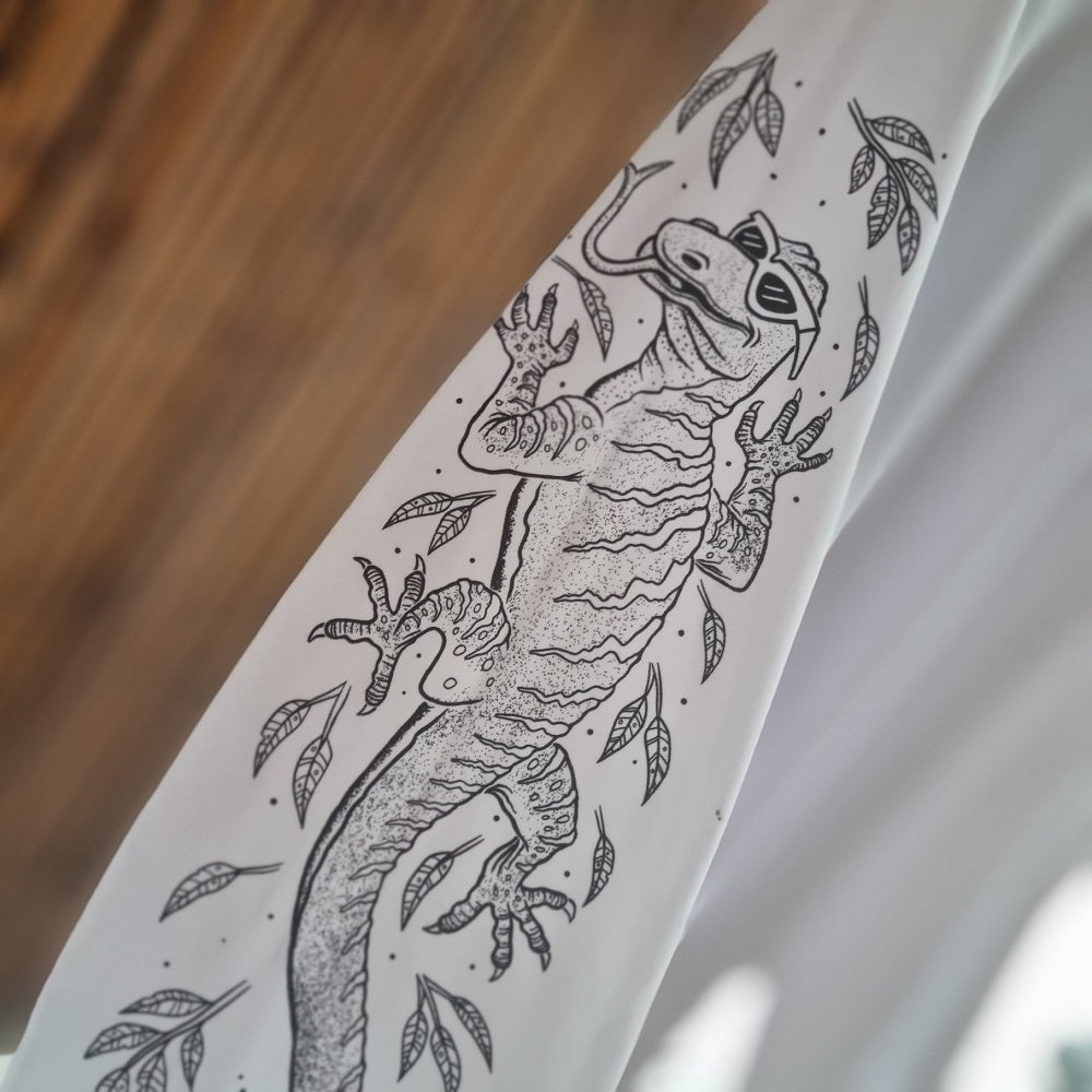Living the dream - it doesn't get much better than exploring this great land of ours - whether its on the bucket list or your doing it now, celebrate in the tee that says it all! With a beautiful big back print, a lizard running up the sleeve, finished off with a front pocket print! This epic design comes in a Tee also.