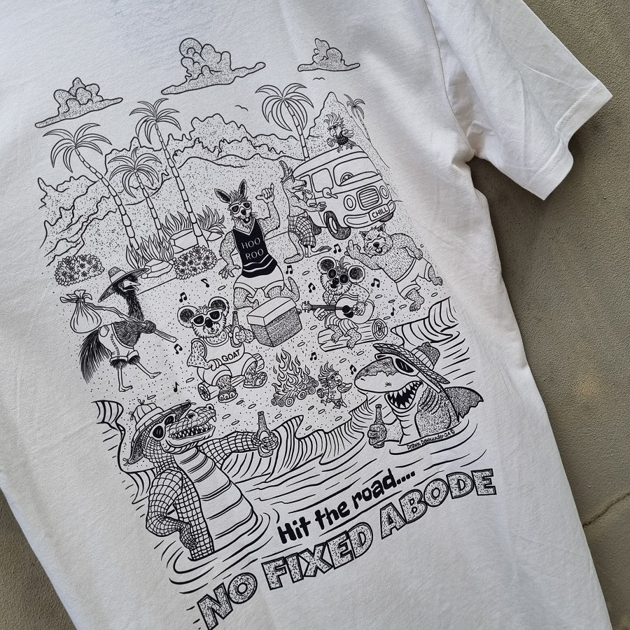 LET'S GO! Adventure time is here - this crew of Aussie characters is out for a good time, on the move with no fixed plans and no fixed place to be, just living life! Sharing a yarn - and a beer - around the campfire while travelling the land Downunder! This design comes in Long Sleeves also!