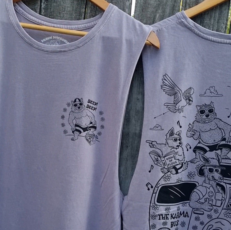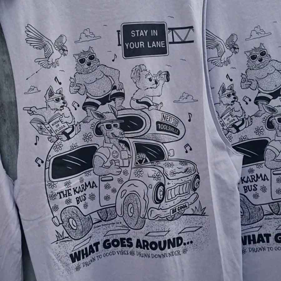 The Karma Bus is doing the rounds - Toot Toot! Jump on board with this epic Aussie crew and enjoy the ride - but be aware... no flogs allowed! Comes in a Tee too!