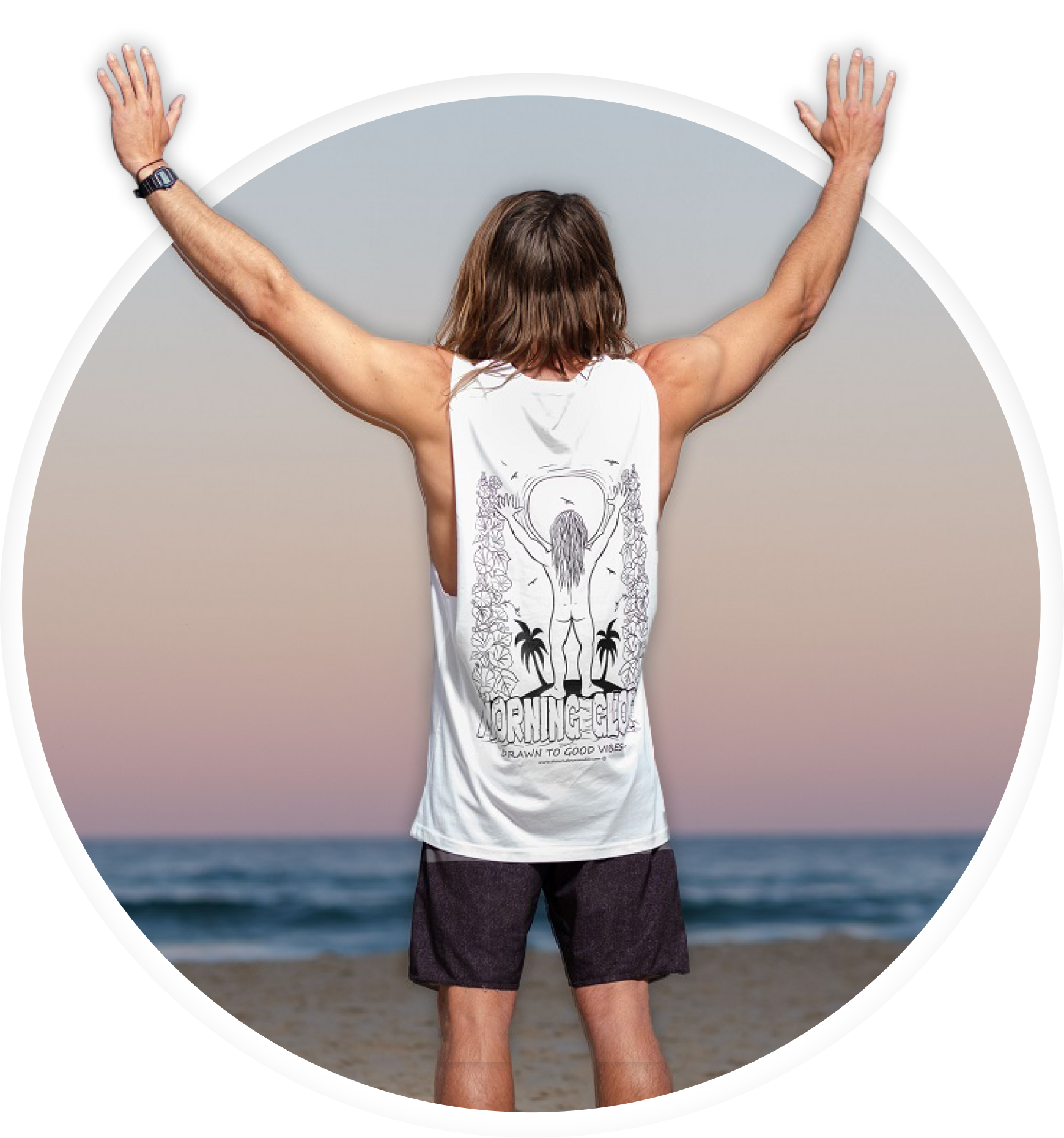 Retro inspired and good vibes abound. Spread the joy of a glorious morning.... Comes in Tanks and Long Sleeves also.