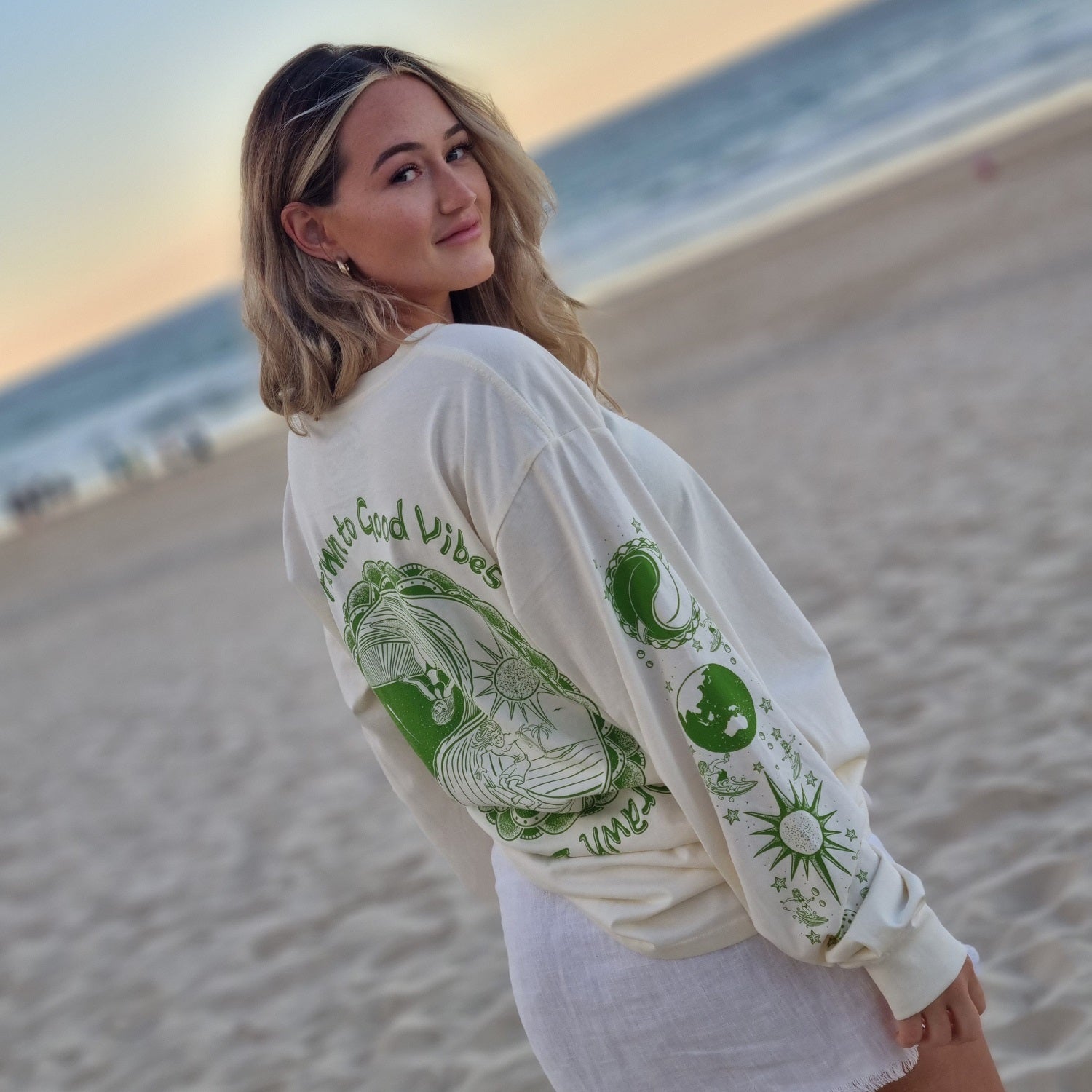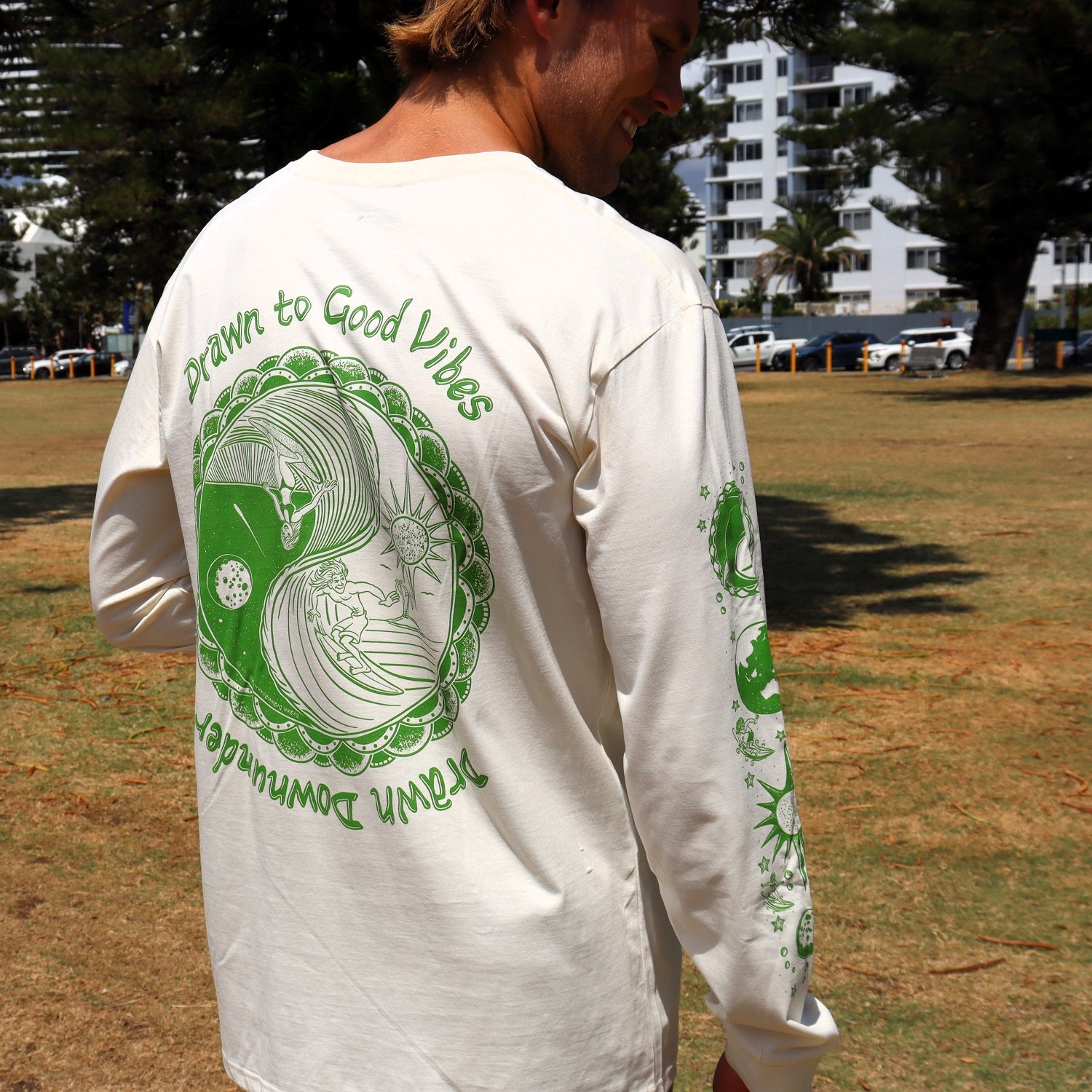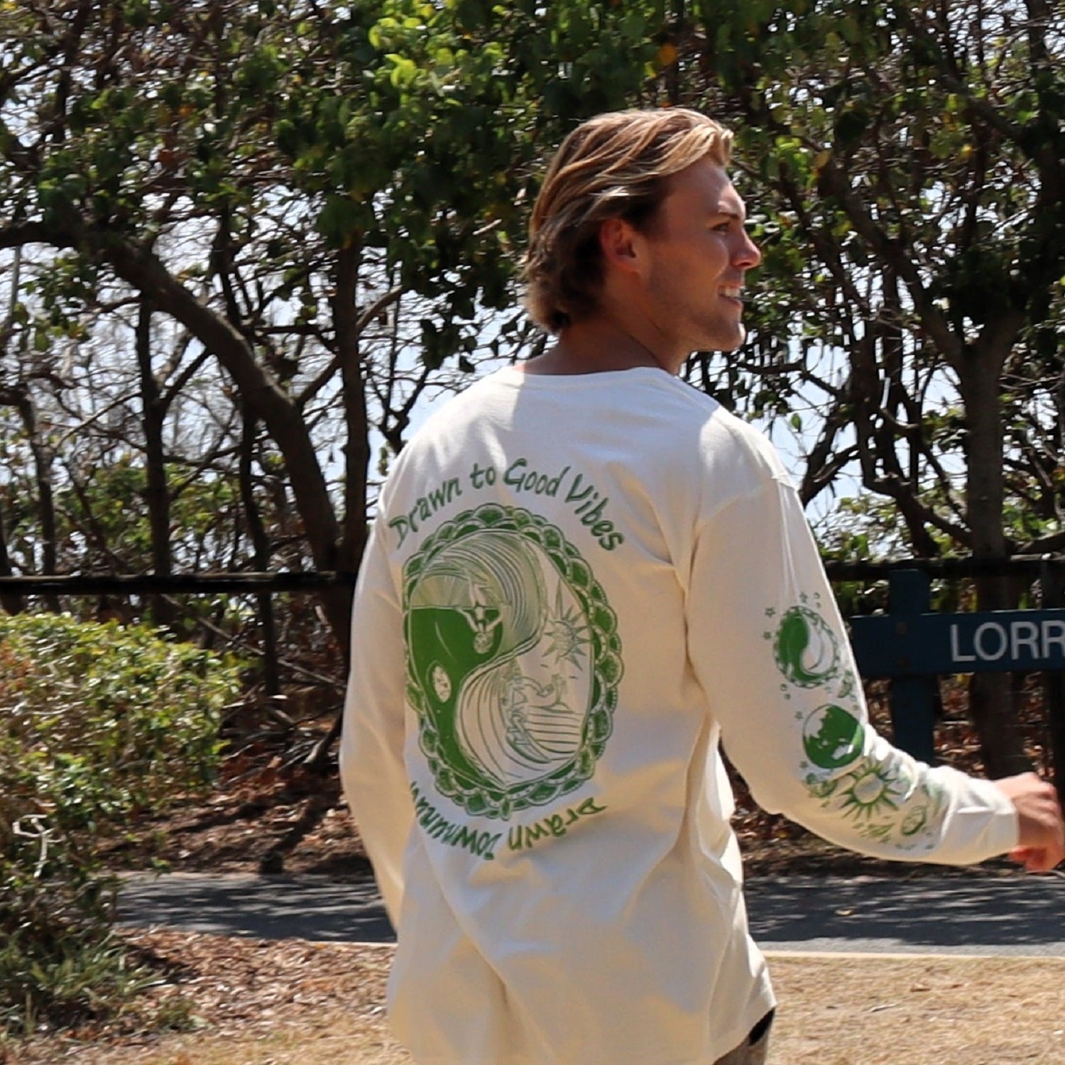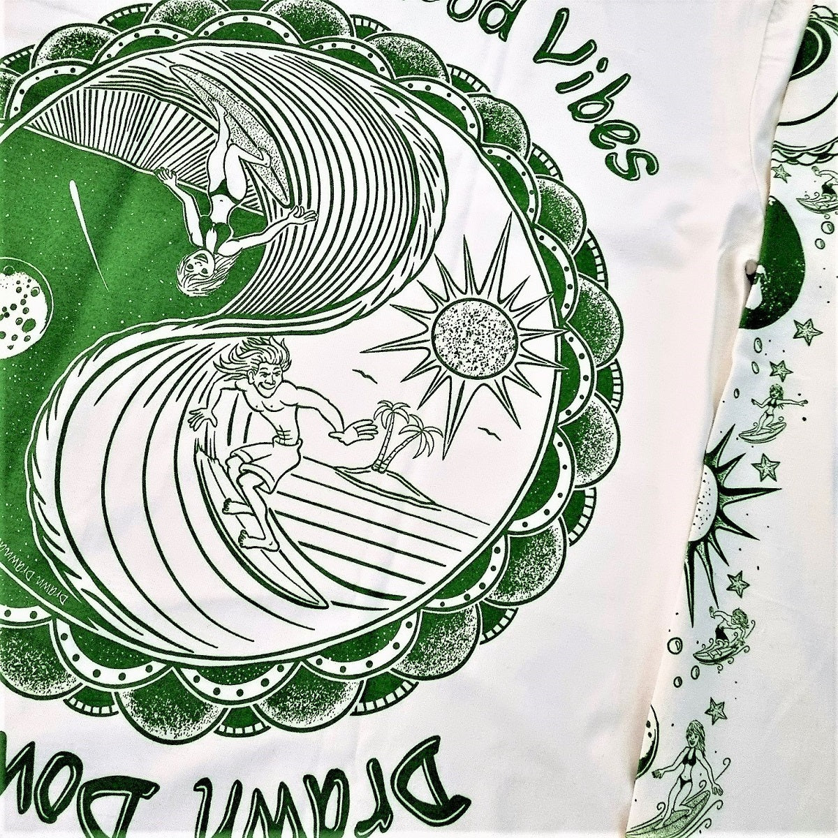 Based on the beautiful mandala art style, enjoy the beauty and balance of our Yin Yang Surf piece with a beautiful emerald coloured ink. This design is also available in Tees & Tanks.